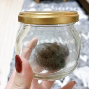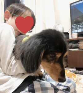 最後に名残惜しそうにハッピーを撫でり Kくんに、ハッピーの耳に残っていたふわふわの毛をちょっと切ってあげたらとっても喜んでくれました🥰
