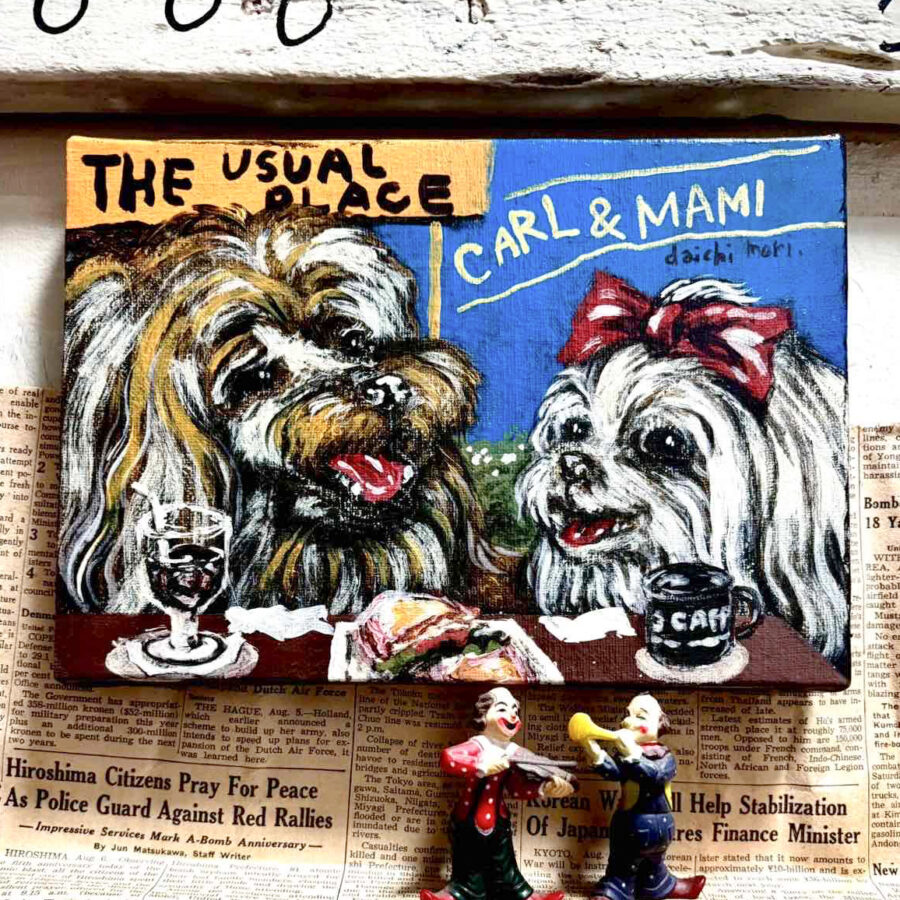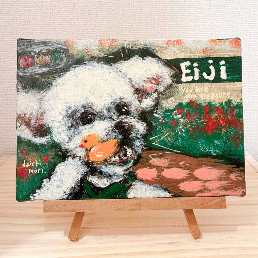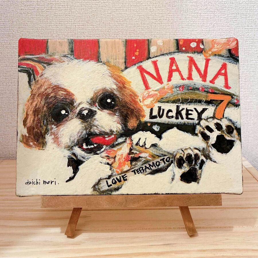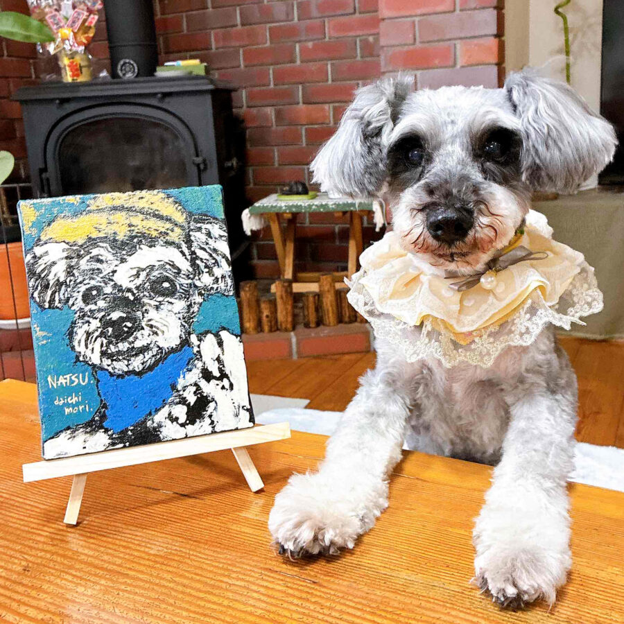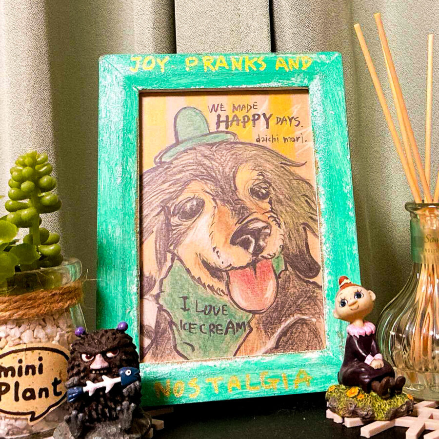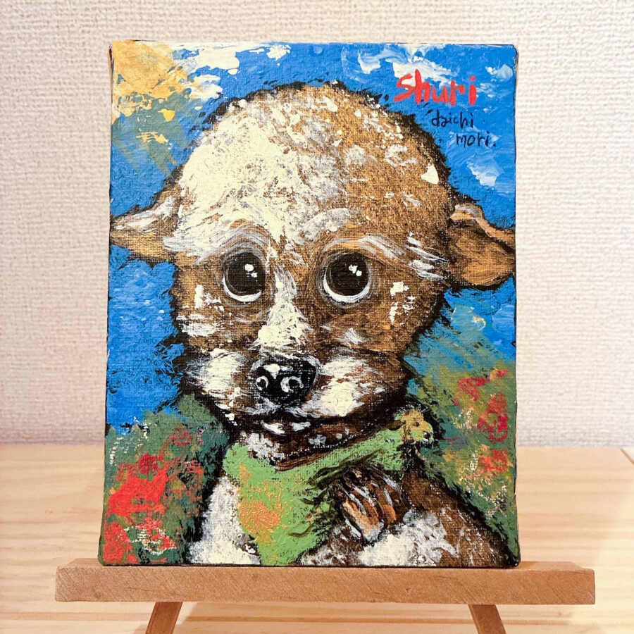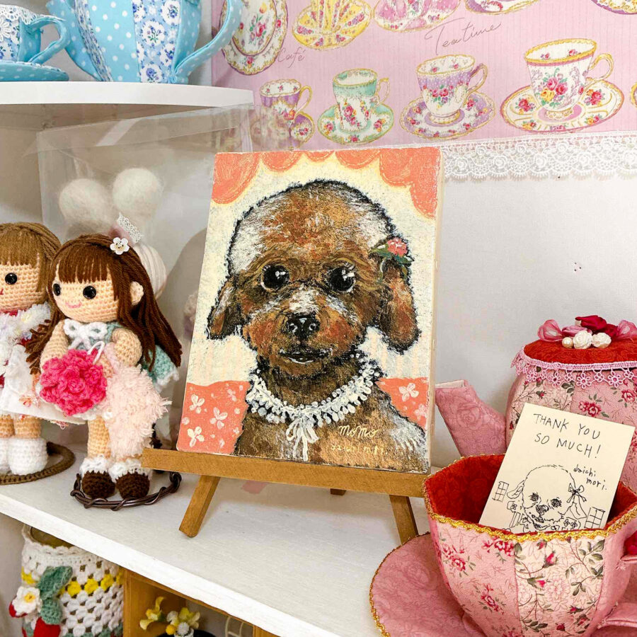 プチ・レノンでは、画家・森大地による犬の絵画制作を承っています。ただ似せるための一枚ではなく、その子らしさや、いっしょに過ごした記憶までそっと絵の中に置いておけるように。