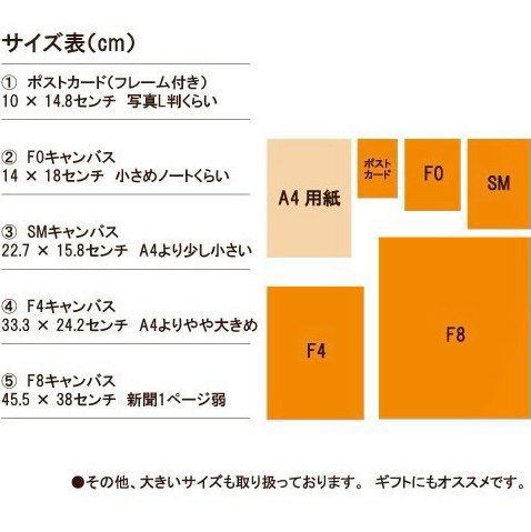 飾る場所や、残したい気持ちの大きさに合わせて、いくつかのサイズをご用意しています。